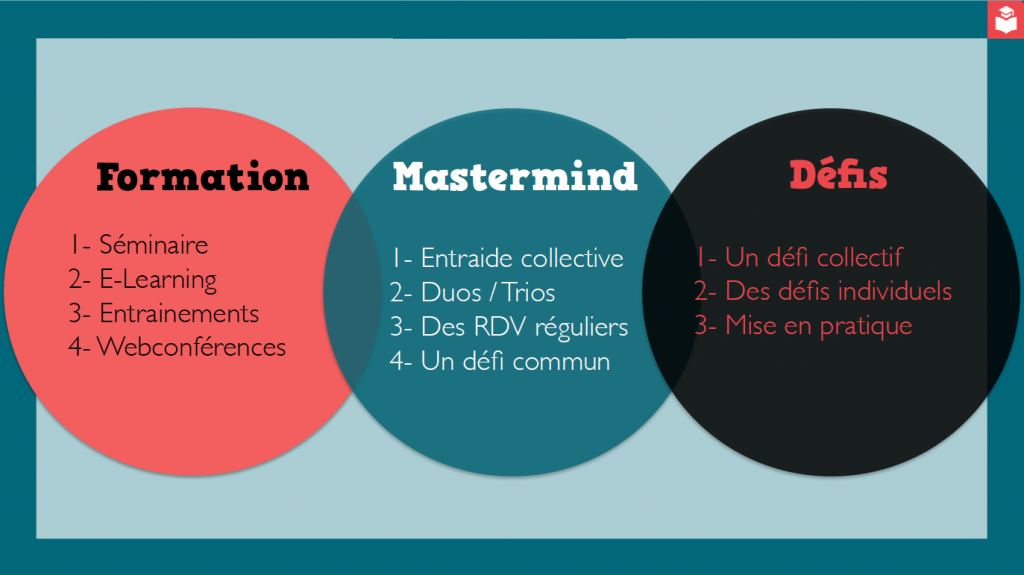 Notez que l'aventure continue au delà de l'année d'accompagnement et de formation à travers les masterminds et les défis !