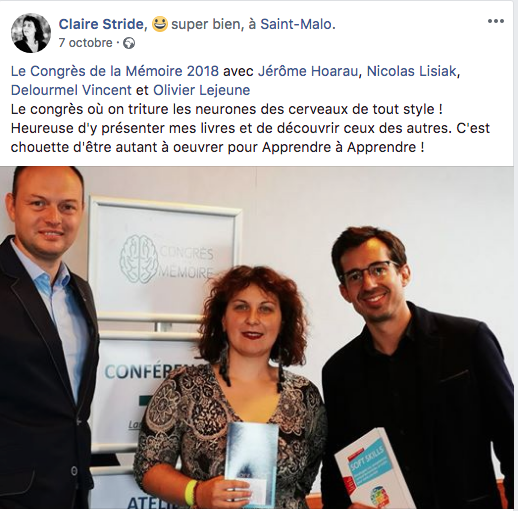Il est le co-organisateur du Congrès de la Mémoire, des conférences Apprendre à Apprendre, et du championnat de France de Lecture Rapide et de Mind Mapping, et intervient régulièrement en entreprise pour des conférences sur les soft skills.
