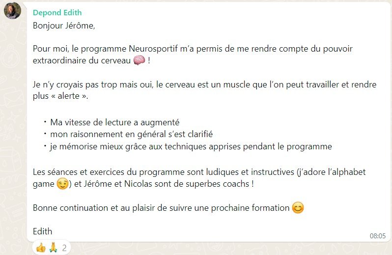 Le programme Neurosportif est un programme d’accompagnement avec des sessions de coaching individuel et collectif. De plus c’est un programme avec des défis liés à la mémorisation, la lecture rapide et aussi le Mind Mapping et autodiscipline. C’est bien plus qu’une autoformation.